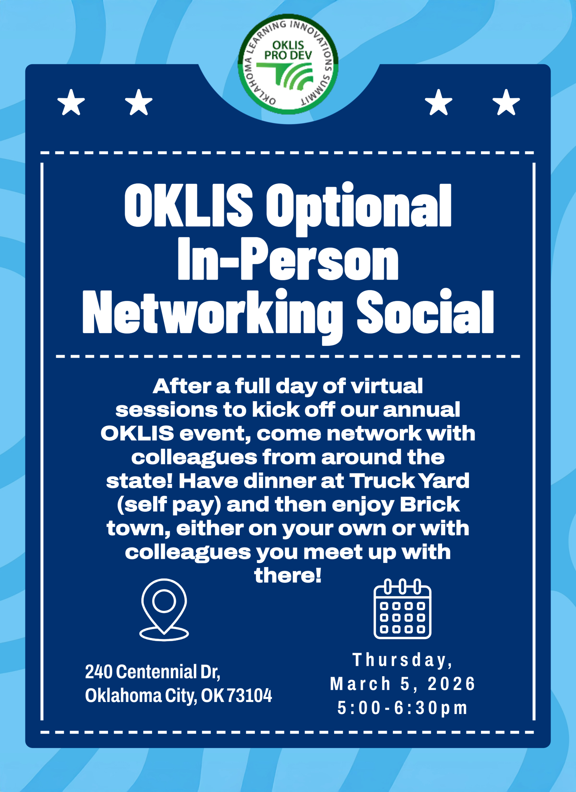 Networking Social at TruckYard in Oklahoma City – March 5 at 5pm (optional)